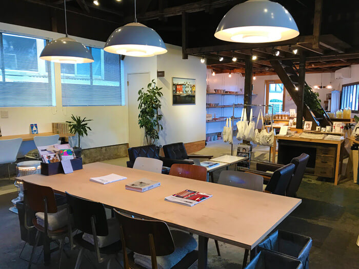 鉄工所をリノベーションしたホホホ座金沢店内は、新しさと懐かしさがミックスされた独特のスタイル。