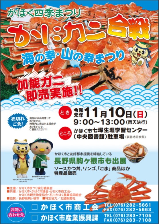 石川県産の加能ガニや香箱ガニが格安で味わうことができるイベント。「特製カニ汁」のふるまいも。