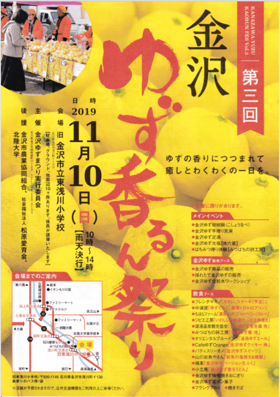 石川県能美市の名産品、国造柚子を使用した商品の販売や、ゆずカフェメニューを味わえるイベント。