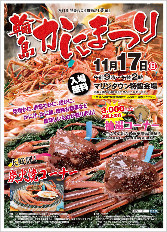 輪島で水揚げされた加能ガニの販売や、カニ汁、カニ飯などカニづくしが味わえるイベント。