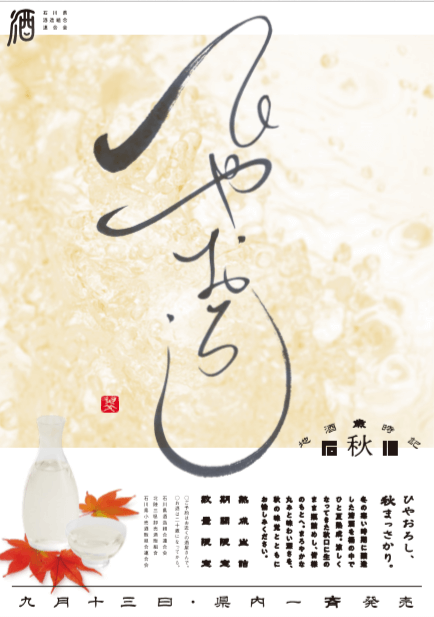 石川県では例年約30種のひやおろしがお披露目されます。冬にできた新酒を低温熟成させた酒で、新酒とは違い熟成しているのにすっきりと飲みやすいのが特徴です。ツマミとのペアリングも様々で、日本酒好きには秋一番の楽しみ。4合瓶で1,800円前後と手に入れやすい価格なのも魅力の1つです。