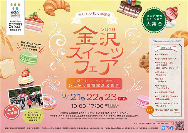 金沢で人気のパティスリーやカフェが一堂に会し目当てのスイーツをその場で堪能できる、屋外スイーツイベント。