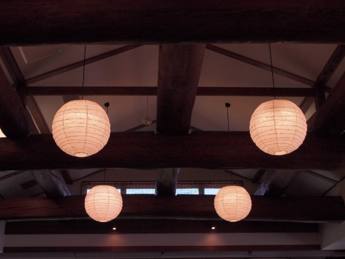 道の駅のレストラン中は天井が高くて大きな木柱と素敵なぼんぼり照明のせいか?人が多かったけれど、開放感があってなかなか雰囲気も良かったよ〜。