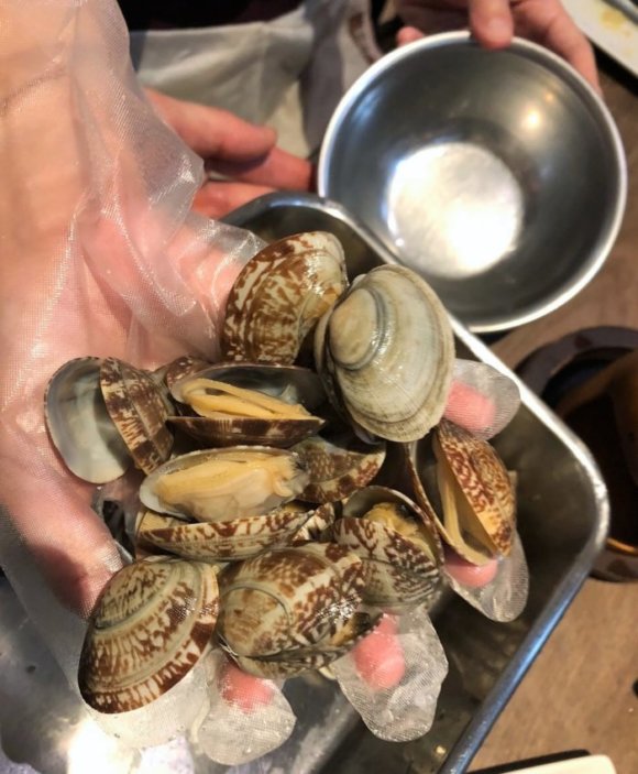 注文すると(手袋で)アサリをつかみ取りさせてくれ、パスタに入れてくれました♪