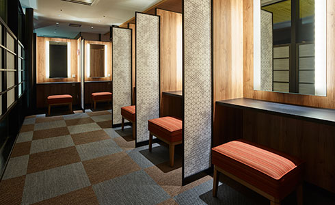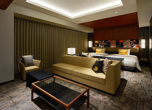 加賀友禅の技法の一つ「加賀五彩」がフロアやお部屋の壁前面に取り入れられていて、モダンでスタイリッシュ!