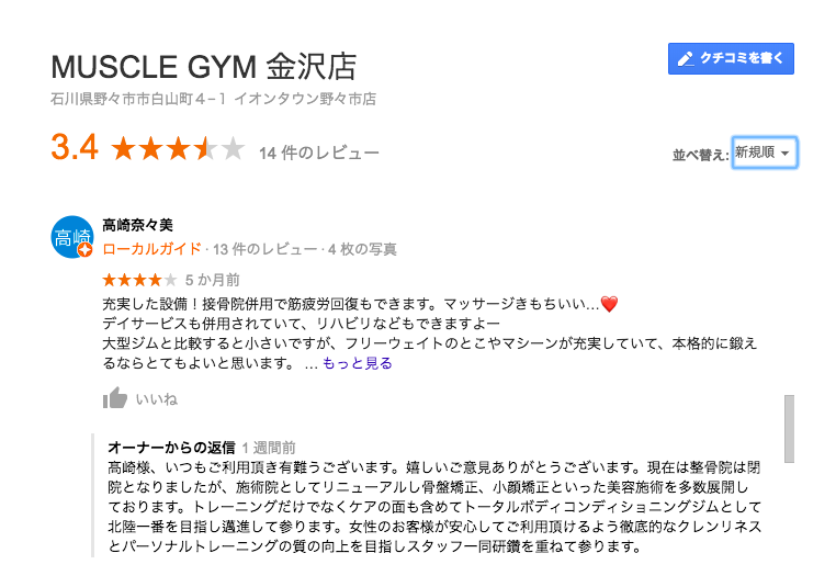 マッスルジム金沢店さんのWEBの口コミや評価をまとめてみました!