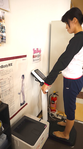 着替えたら受付前にある「InBody(インボディー)」で体内バランスをサクッと正確に測ります。