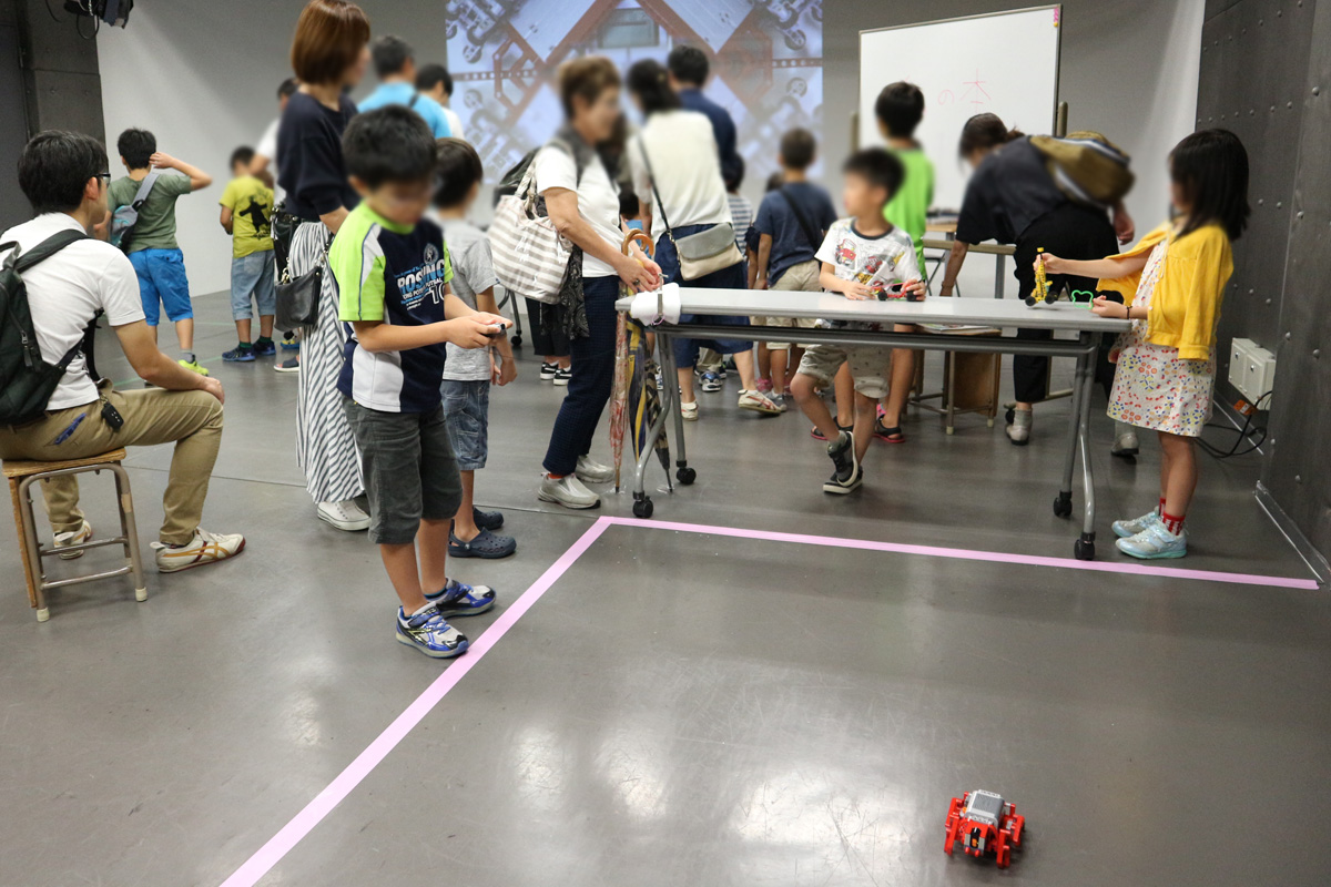 micro:bitという小さなコンピュータ(マイコン)を使ってロボットを動かし、いろいろなコースをクリアしていくコーナー。