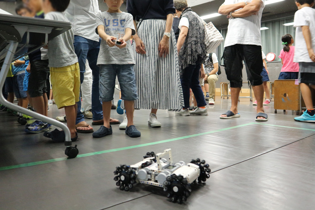 WRO審査員、五十川芳仁先生のロボット展示コーナーは出入り自由!