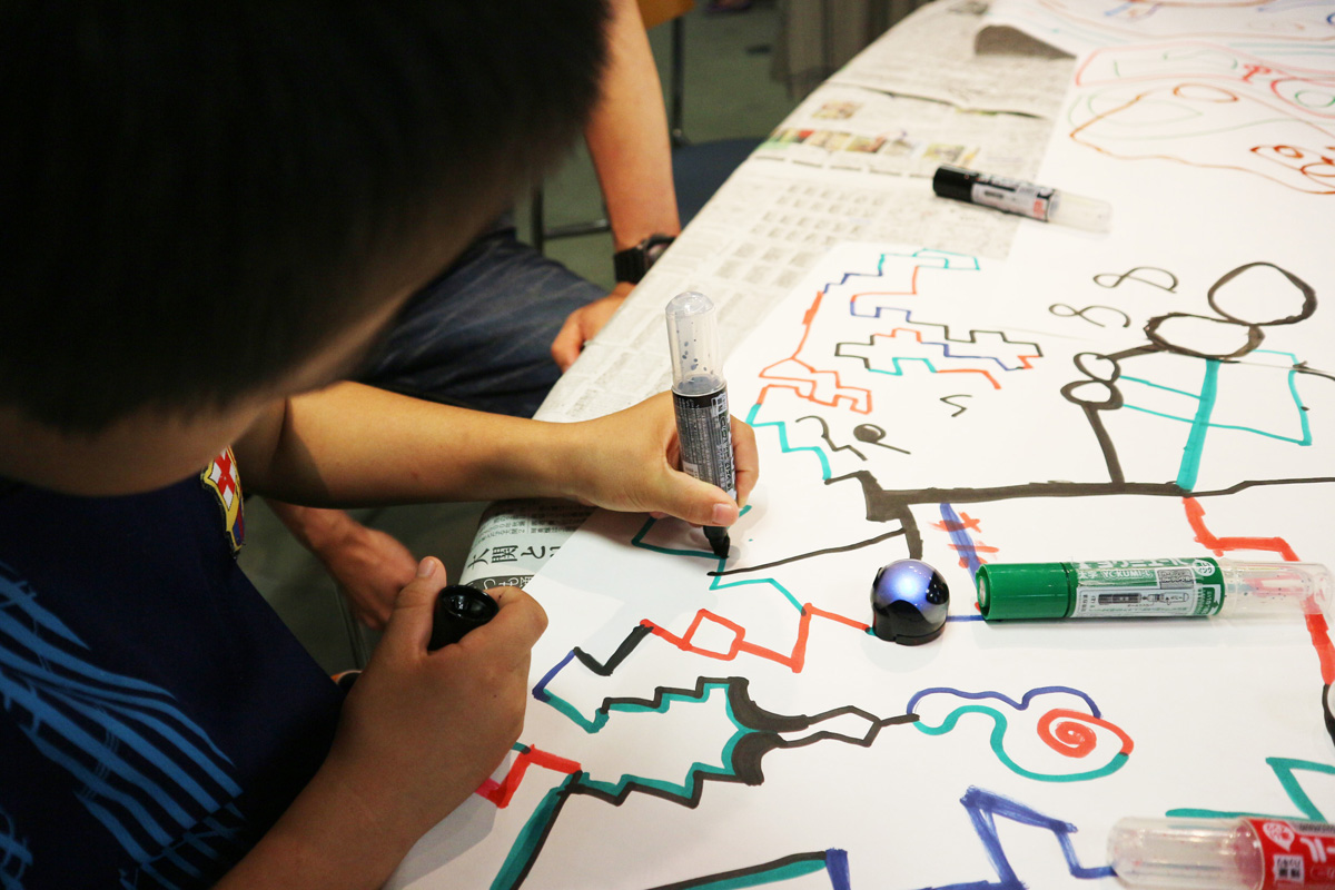 迷路を作ったり、好きなキャラクターの上を走らせたりして、みんな夢中になって遊んでいました。