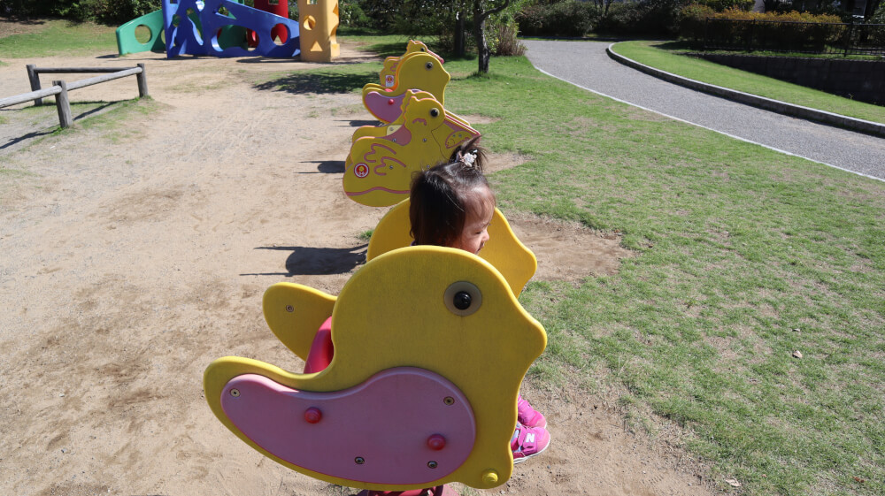 トイレは小規模な公園ながらも、和と洋のそれぞれ一つづつに、バリアフリーやオムツ替えのスペースなんかもあって、赤ちゃんや乳児連れも安心だなと感じました。