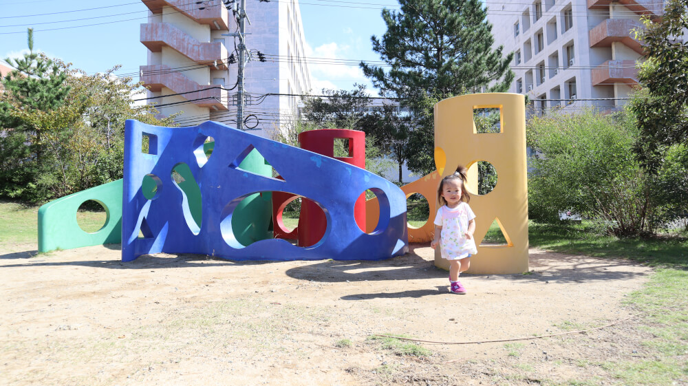 カラフルで色々な形の穴の遊具もなんだか楽しそうに走り回って穴からこっちを覗いてました〜。