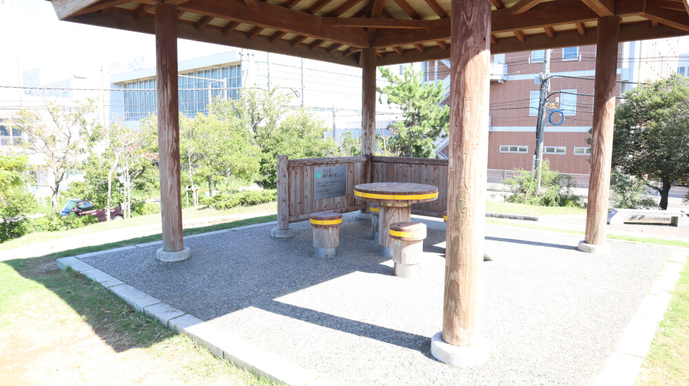 また、公園の遊具の丘を登っていった頂上には「屋根付き休憩所」もあるのでピクニックやちょっとお弁当を広げて食べるのも快適そうだなと思いました。