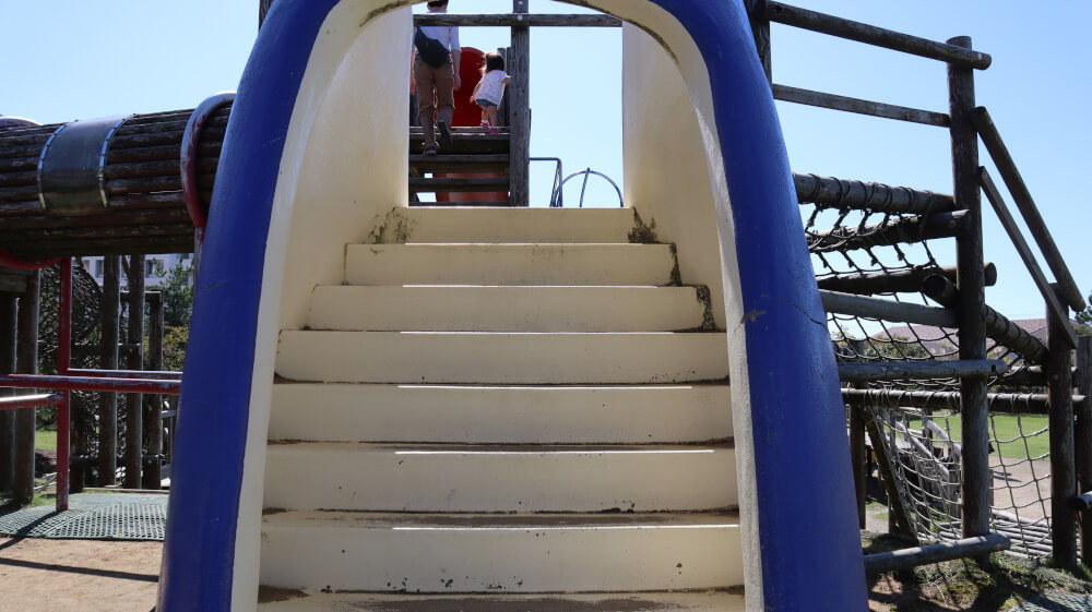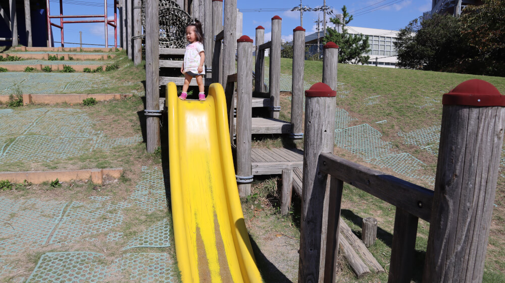 黄色い一番短い滑り台は近ずくとわかりますが、めっちゃ急!!で、立ったものの2歳になりたての娘には怖すぎて滑れませんでした。あと、近くに大きい蜂もいて大急ぎで逃げました・・・