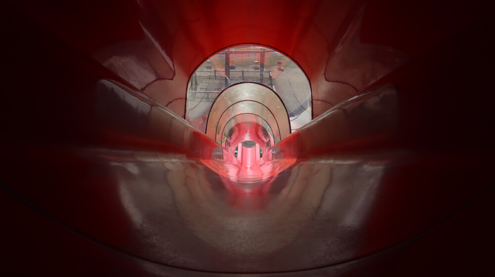 長いローラー滑り台や色違いの滑り台たち