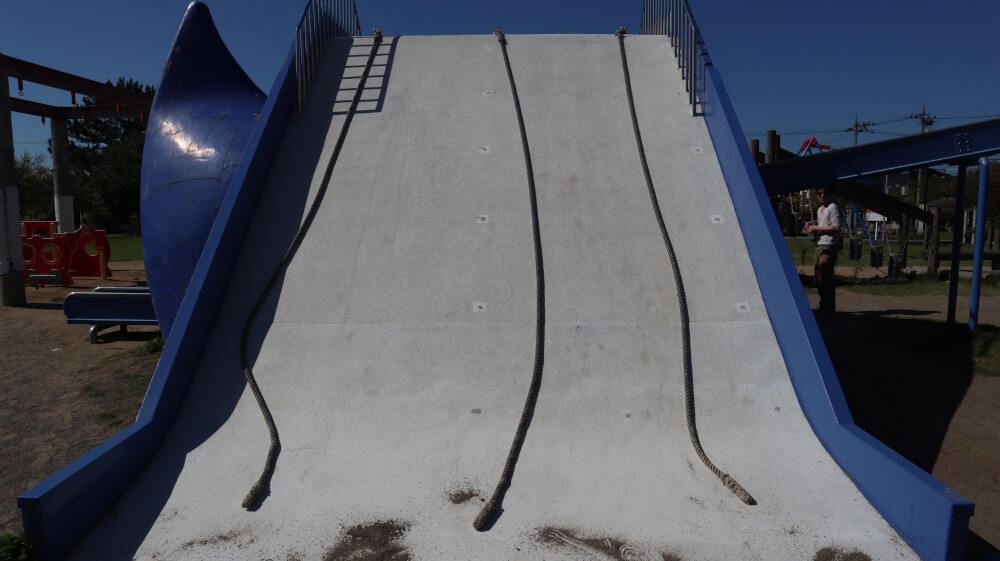 ともかく、ハマナス恐竜公園の滑り台は長いだけでなくて「傾斜」や「色」も様々な工夫があるのです。