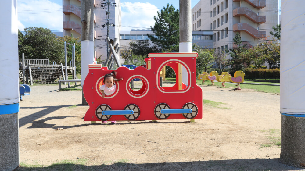 幼児向け「汽車」や「ひよこ」の可愛い遊具もあるよ