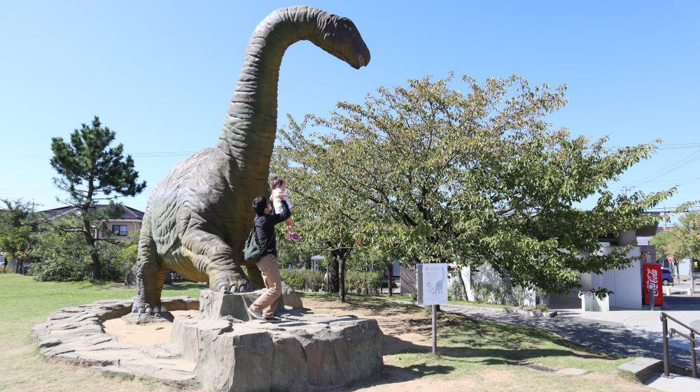 全長6mほどもある大きな恐竜のオブジェが迫力満点の「ハマナス恐竜公園」