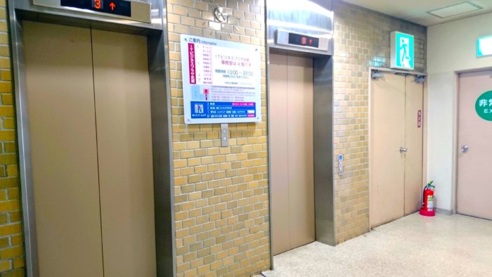 ITビジネスプラザ武蔵はエムザとは違う建物内にあって、なんだか怪しげな雰囲気を醸し出す(?) エレベーターに乗らないと辿り着けません。