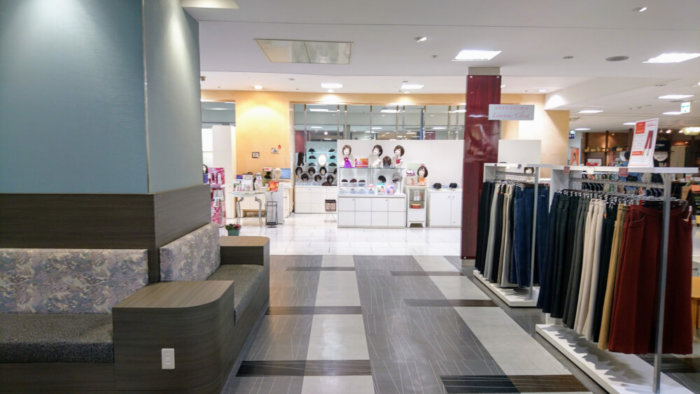 ひたすら、まっすぐサインにしたがって建物の奥へ進むと・・・突き当たりに「カツラ売り場」が見えてきます。