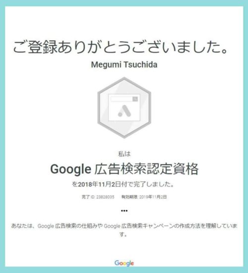 2018年11月 Google認定資格【Google広告検索】